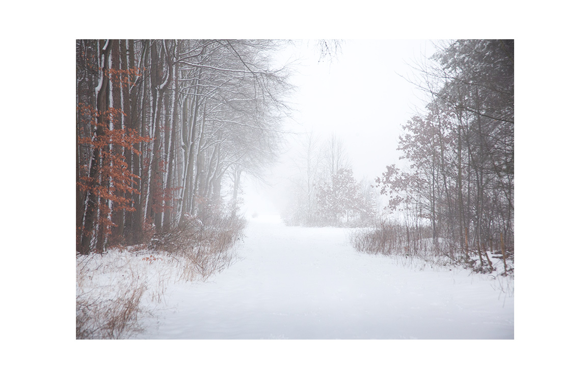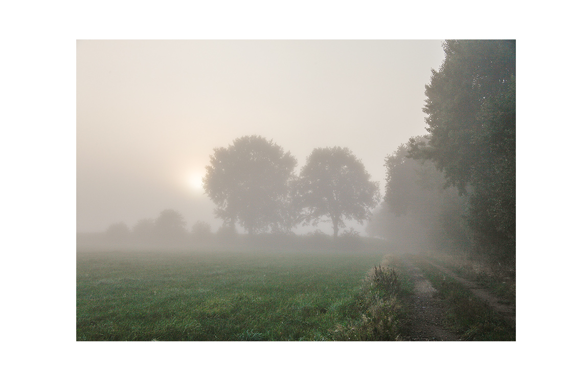 fest – Bäume, die nur schemenhaft zu erkennen sind, Wege, die ins Ungewisse führen, und Horizonte, die im weichen Grauverschwimmen.